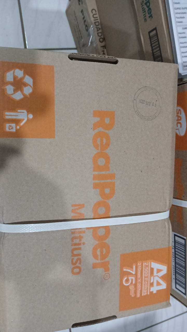 Caixa de papel ofício A4 c/ 5 remas(2500 folhas) cor branca.